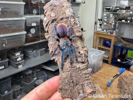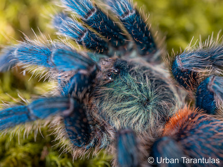 A true gem in the tarantula world! This dwarf species stuns with its electric blue legs, golden carapace, and thick webbing. Despite its small size, it has a big personality—active, fast, and always on the move. If you love vibrant colors and heavy webbers, this one’s for you.