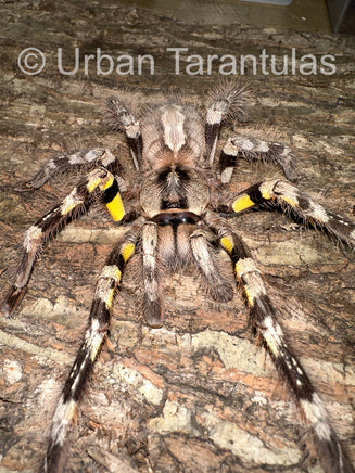 The Poecilotheria striata, or Mysore Ornamental, is a stunning Old World arboreal tarantula from India. Its intricate black, white, and gray patterns give it a ghostly elegance, making it a standout in any collection. Fast-moving and reclusive, this species thrives in a well-ventilated, vertically oriented enclosure with ample hiding spots. A true beauty for those who appreciate the Poecilotheria genus.