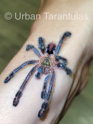 The Ybyrapora diversipes, also known as the Amazon Sapphire Pinktoe. Reclassified from the Avicularia genus recently, this stunning arboreal tarantula hails from the lush rainforests of Brazil, where it resides in the high canopies. The Amazon Sapphire Pinktoe is renowned for its striking color palette, featuring a blend of vibrant greens, blues, and pinks, making it a standout in any collection. Ideal for both novice and experienced tarantula enthusiasts, the Ybyrapora diversipes brings a touch of exotic elegance and vibrant color to your terrarium. I think this is one of the most beautiful species in the entire hobby.